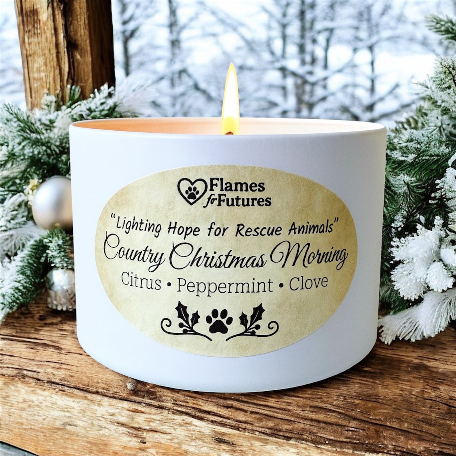 Bring the holiday spirit into your home with our Country Christmas Morning candle. Featuring refreshing citrus, invigorating peppermint, and warm clove scents, this festive blend captures the magic of Christmas morning—while 25% of every purchase helps homeless animals find loving homes.