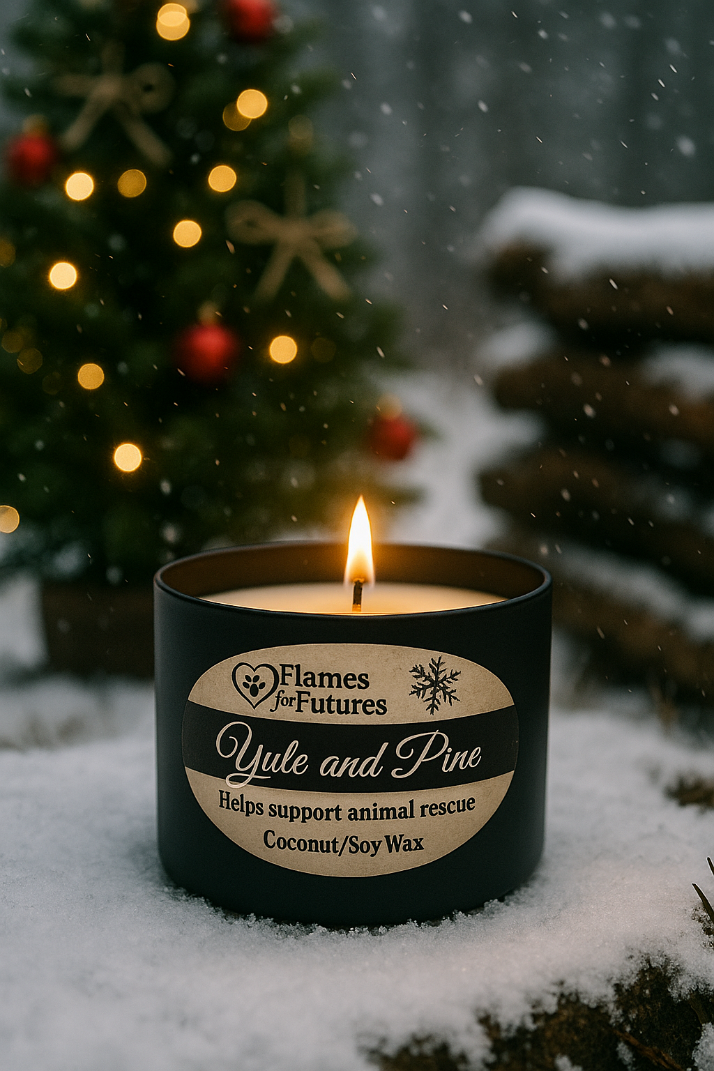 Bring the magic of a fresh-cut Christmas tree into your home with Yule & Pine. This authentic holiday candle captures the crisp, invigorating scent of pine and fir—while 25% of every purchase helps homeless animals in BC find their forever families.